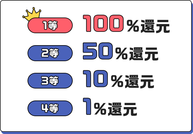 抽選にて引いた等数に応じた還元率を、以下のとおり進呈いたします。