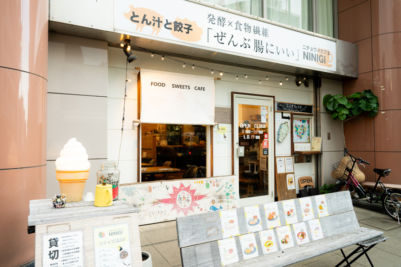 JR中央線・西武多摩川線「武蔵境駅」から徒歩3分ほどの天文台通り沿いにある、「ぜんぶ腸にいい」がコンセプトのダイニングカフェ。食物繊維や発酵食品を取り入れた料理を、ランチ・カフェ・居酒屋と、時間帯に応じたスタイルで提供しています。