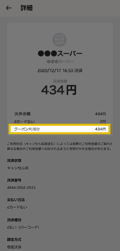 - お支払い完了画面で「詳細」をタップするとクーポン充当額が確認できます
